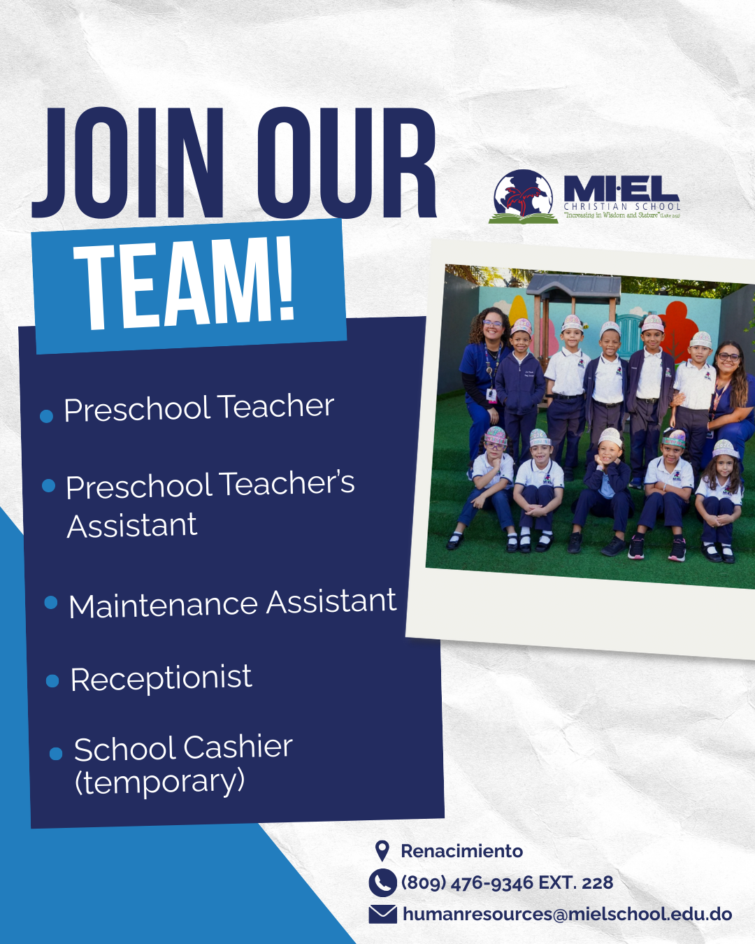 At MECS, we foster a dynamic, collaborative, and purpose-driven environment where every team member is part of a family. We seek professionals who are passionate about Christian education, with a heart for service and a strong commitment to biblical principles. Candidates must profess faith in Jesus Christ, be active members of an evangelical Christian congregation, and submit a pastoral reference letter from their church.